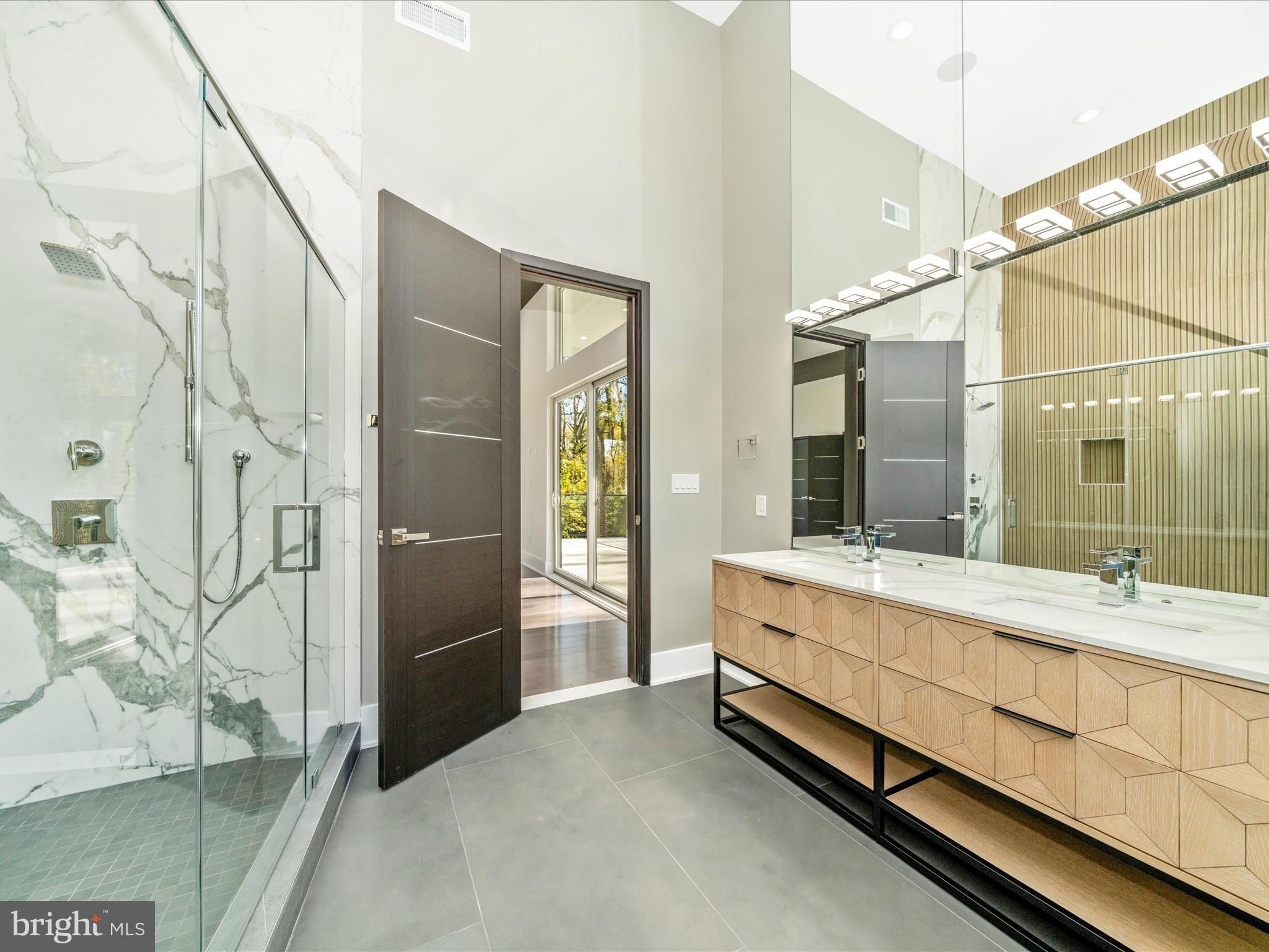 Immerse yourself in luxury living within this newly built, architecturally stunning 12,000+ square-foot estate set on 2.2 private acres in Northern Virginia. The grand 24-foot foyer makes a dramatic first impression, opening to an expansive modern floor plan designed for both sophistication and comfort. This custom residence showcases five generous bedroom suites, a chef-inspired gourmet kitchen with professional-grade appliances and a separate catering/spice kitchen, plus an impressive two-story office or conservatory that commands attention. Premium design elements include marble and hardwood flooring, sleek ribbon fireplaces, and exquisite crystal lighting throughout. Step outside to your personal retreat featuring a heated saltwater pool, elevated terraces, sprawling patios, and manicured landscaping ideal for entertaining or unwinding in total privacy. Additional amenities include a state-of-the-art home theater, fitness studio, elevator, three-car garage, wet bar, morning kitchen, and advanced smart-home automation. Convenient direct access to the catering kitchen makes hosting effortless. Perfectly situated near premier shopping, fine dining, acclaimed schools, and international airports, this estate redefines modern elegance—blending thoughtful design with unmatched comfort and convenience.